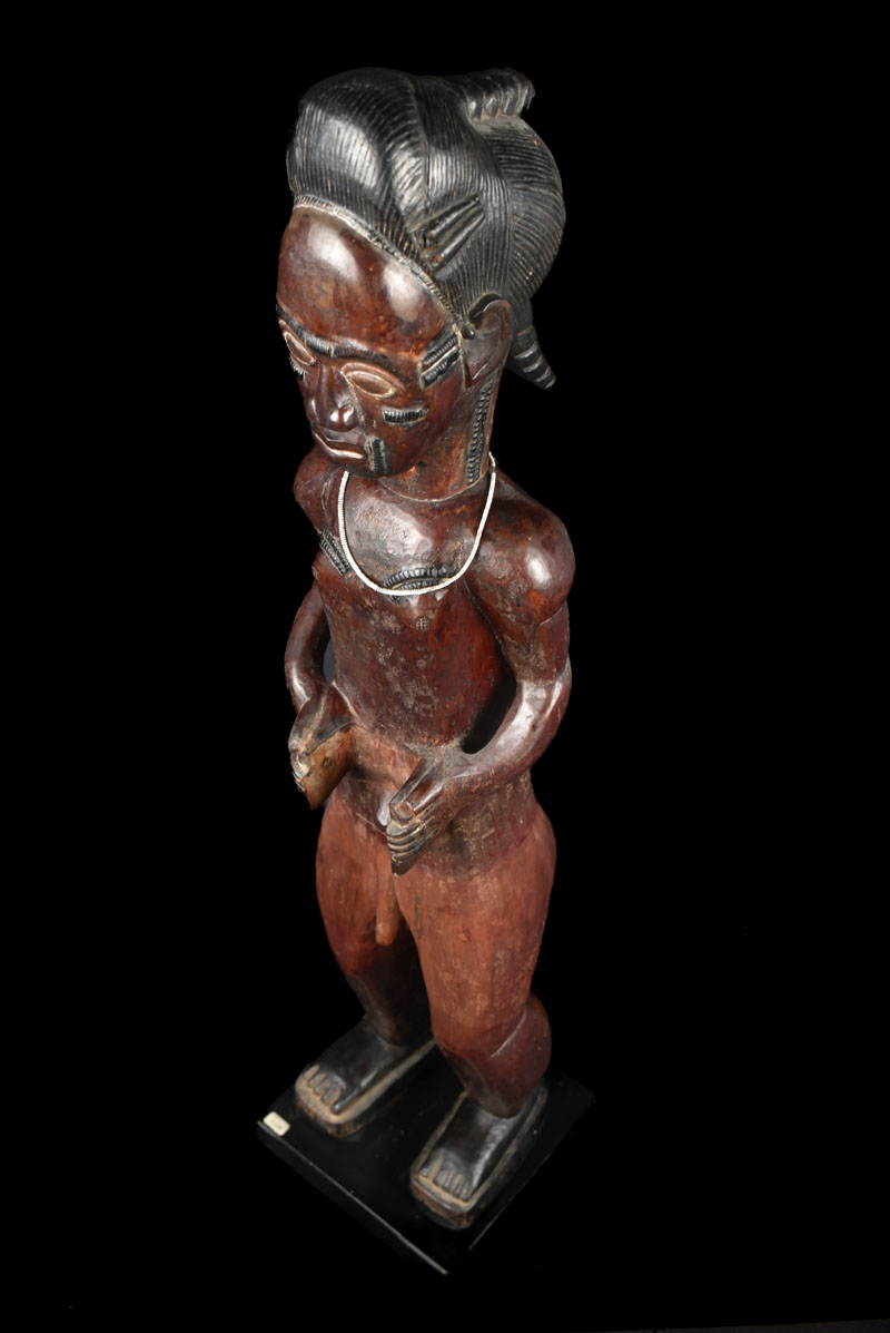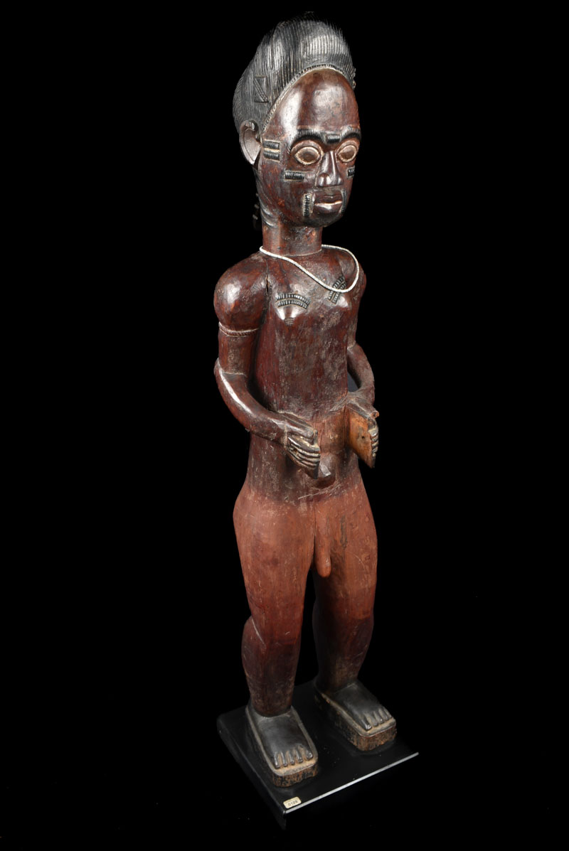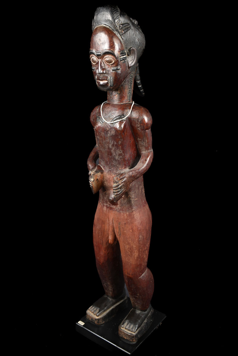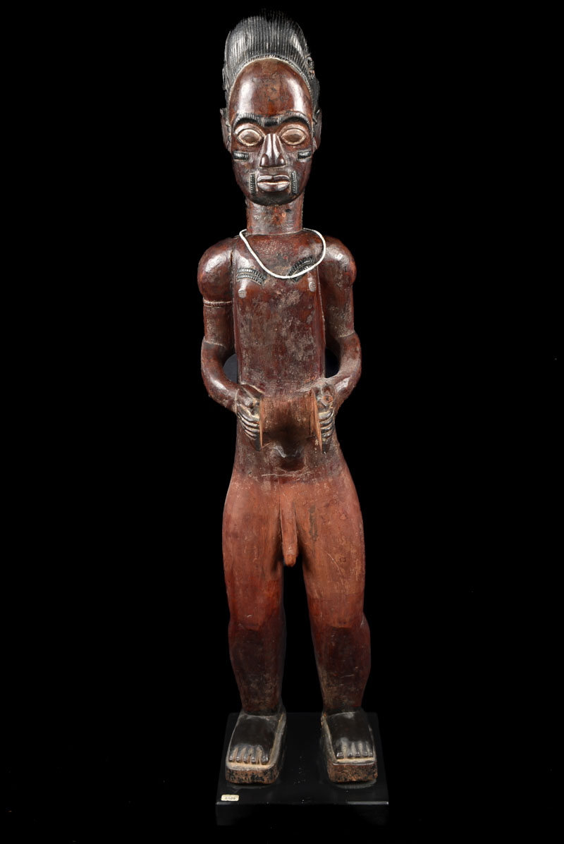 Beautiful male Baule seated figure from Ivory Coast. Large piece, total height: 80 cm!