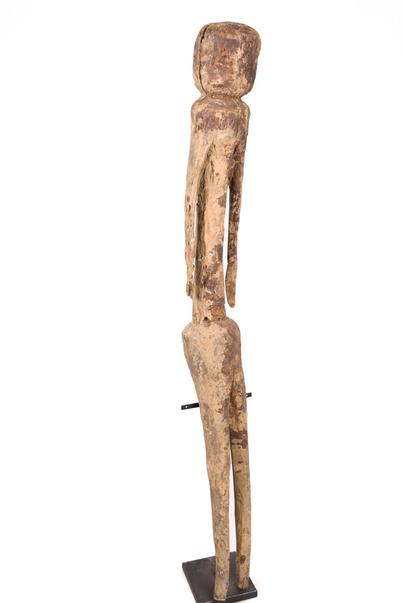 The abstract style of the Losso Moba statues has quickly gained popularity. This is a beautiful old and authentic statue. Features the eccentric expressions of the MOBA, with bulbous head, arms along the body and legs spread. Good condition with a beautiful old age patina. Large piece, total lenght: 119 cm!