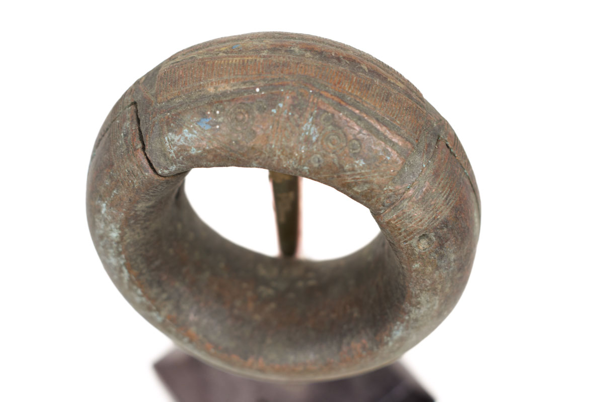 Manillas are (almost ring-like) bracelets, mostly in bronze or copper, very rarely of gold. They served as a kind of money or barter. They were also used as decoration in certain West African nations like Guinea Coast, Gold Coast, Calabar Kingdom, other parts of Nigeria. Manillas were also known as “slave trade money”. The Europeans began to use the Manillas to buy slaves for the slave trade in the Americas (as well as in England before 1807) The size and weight of a Manilla determined the exchange value.