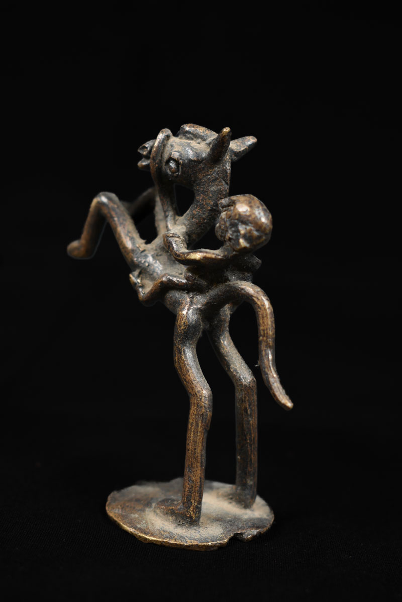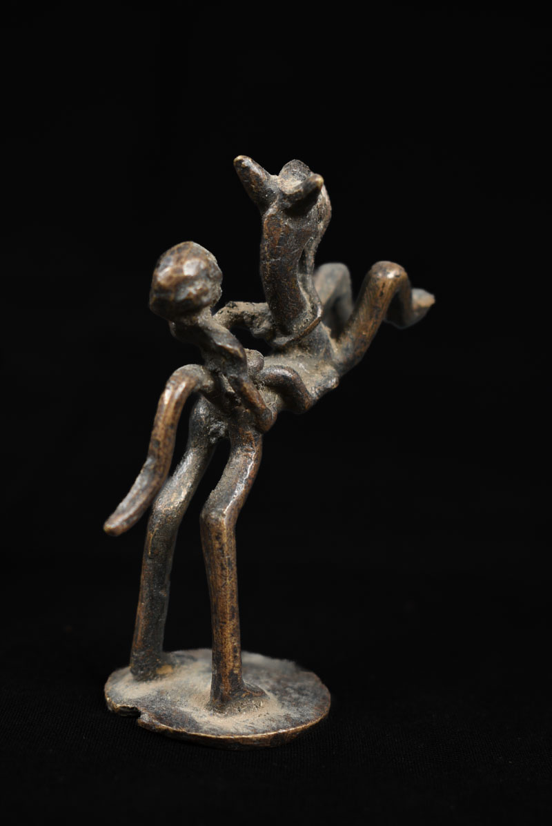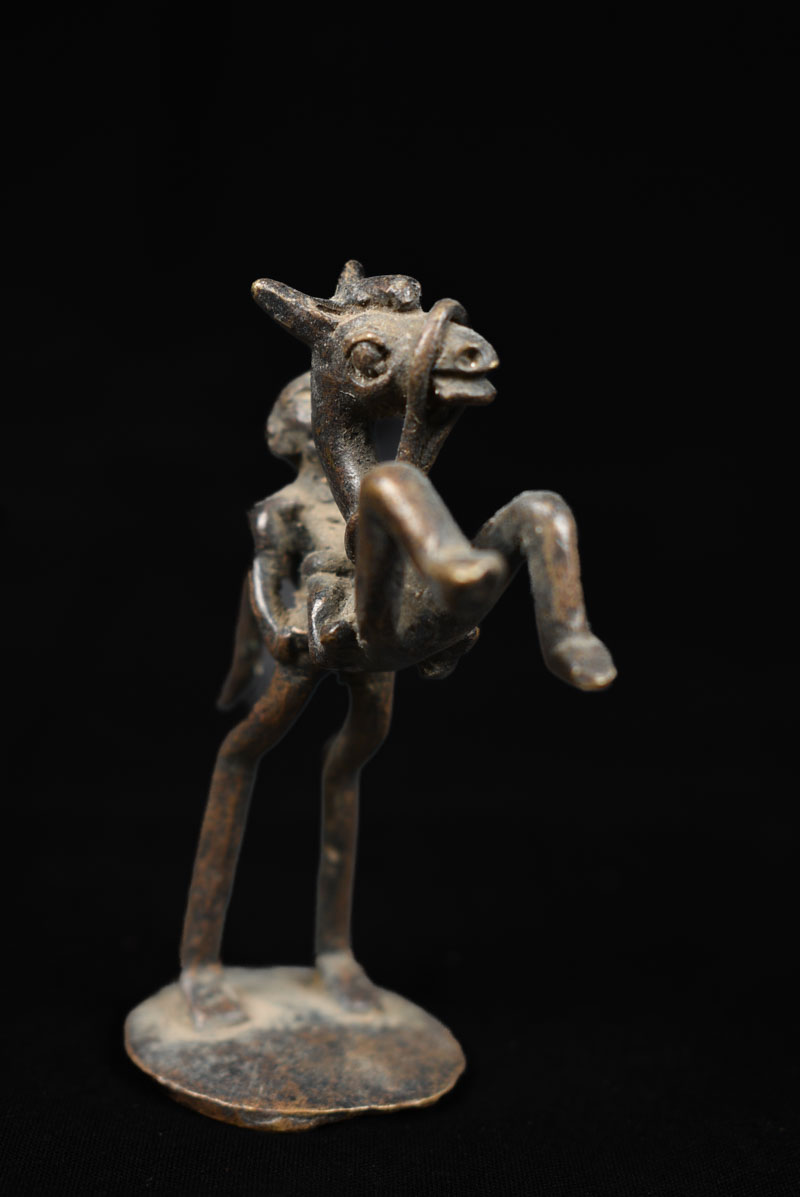 Beautiful bronze equestrian figure from the Dogon tribe of Mali. Equestrian figures express status, prestige, and power. They bring honor to the ancestors. Although rare, horsemen as an icon have existed for 1000 years. Horsemen could be a supreme officeholder (Hogon), emissary from a distant land, or a warrior.