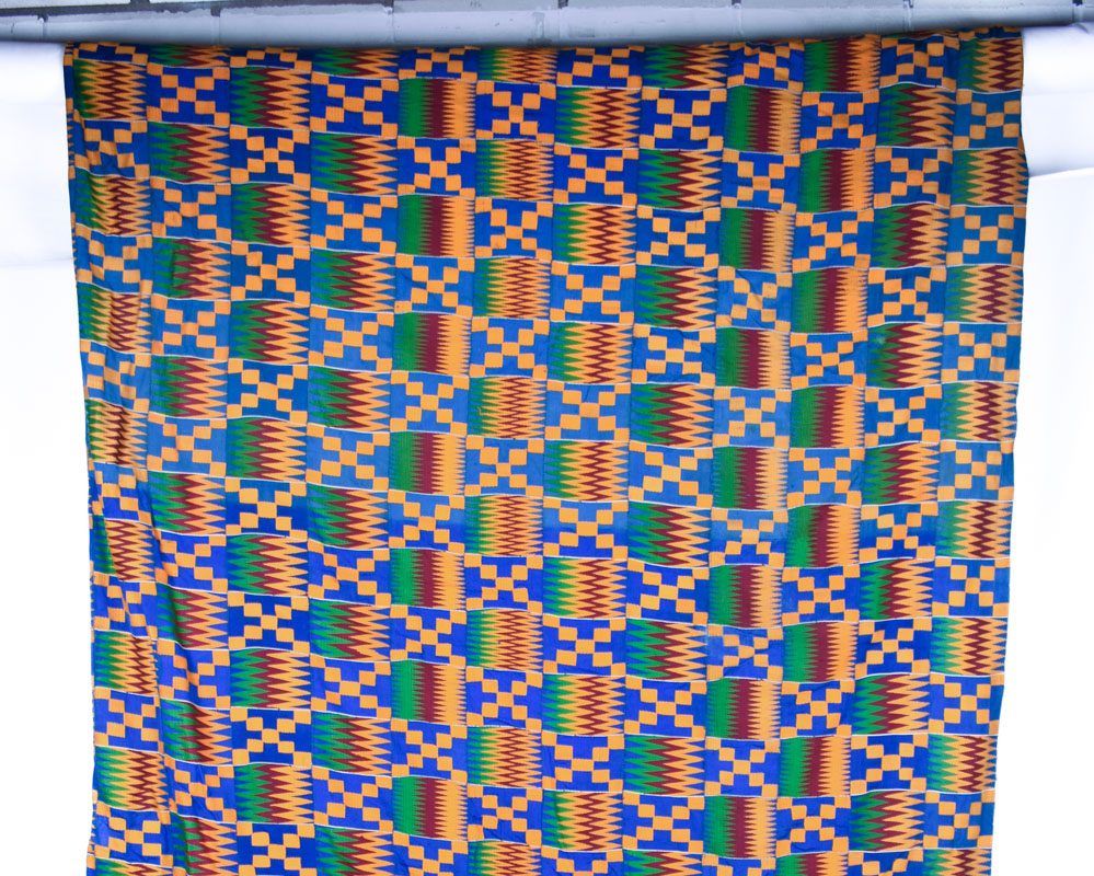This is a man’s cloth, which would be worn wrapped around the body sarong-style. The pattern changes on the edges, where it would be most prominent when worn.
