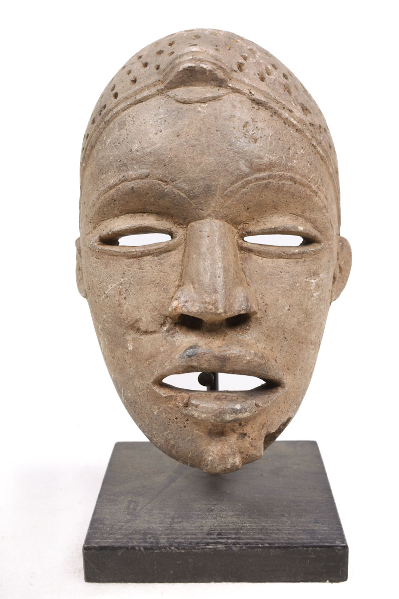 Old expressive African NTADI stone grave mask from BAKONGO.
