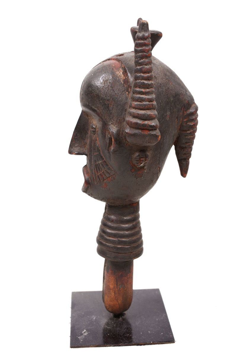 Authentic Fang Byeri Head from Gabon. Byeri – heads functioned much in the same way as Byeri enyema figures in that they guarded the boxes of bark containing the remains of important ancestors. Such heads are often believed to be even older in origin than the full figures and are seen by some as their forerunners. Good condition with a wonderfull aged patina. Custom made stand is included.